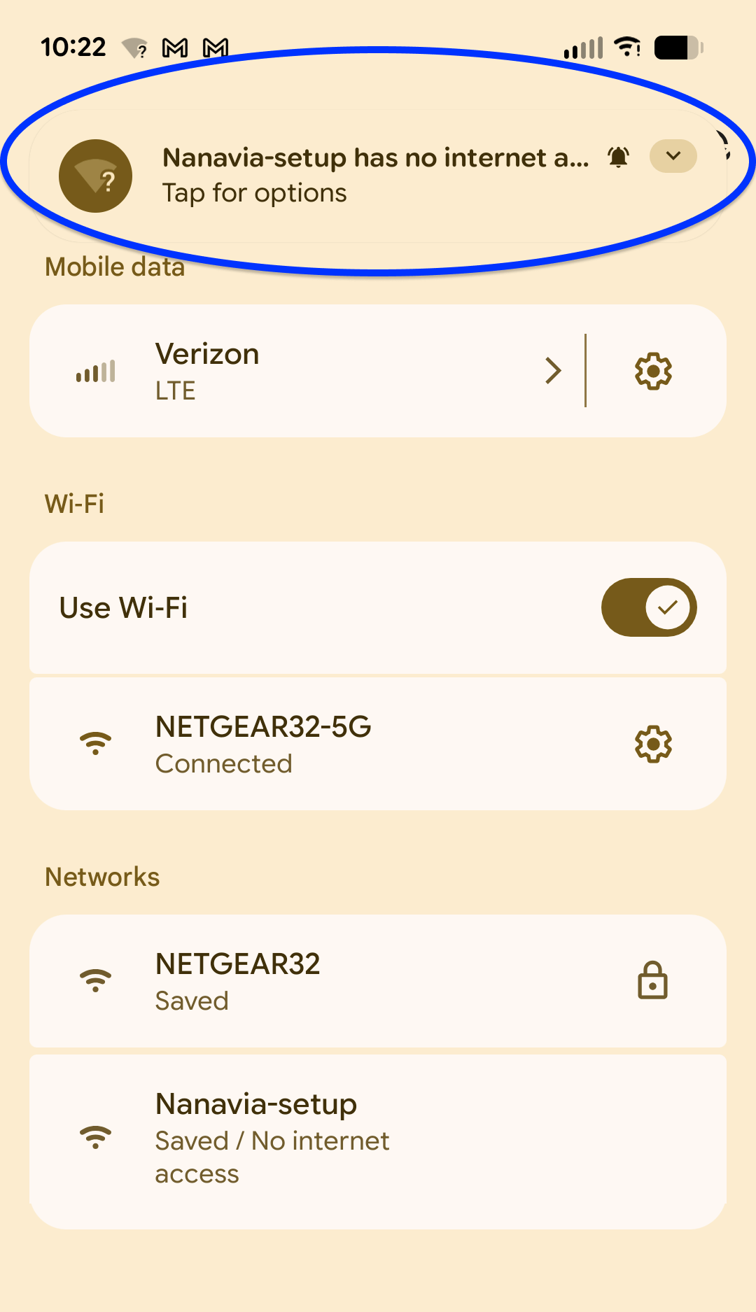 tell you that the network does not have access to the internet. Open the notification and