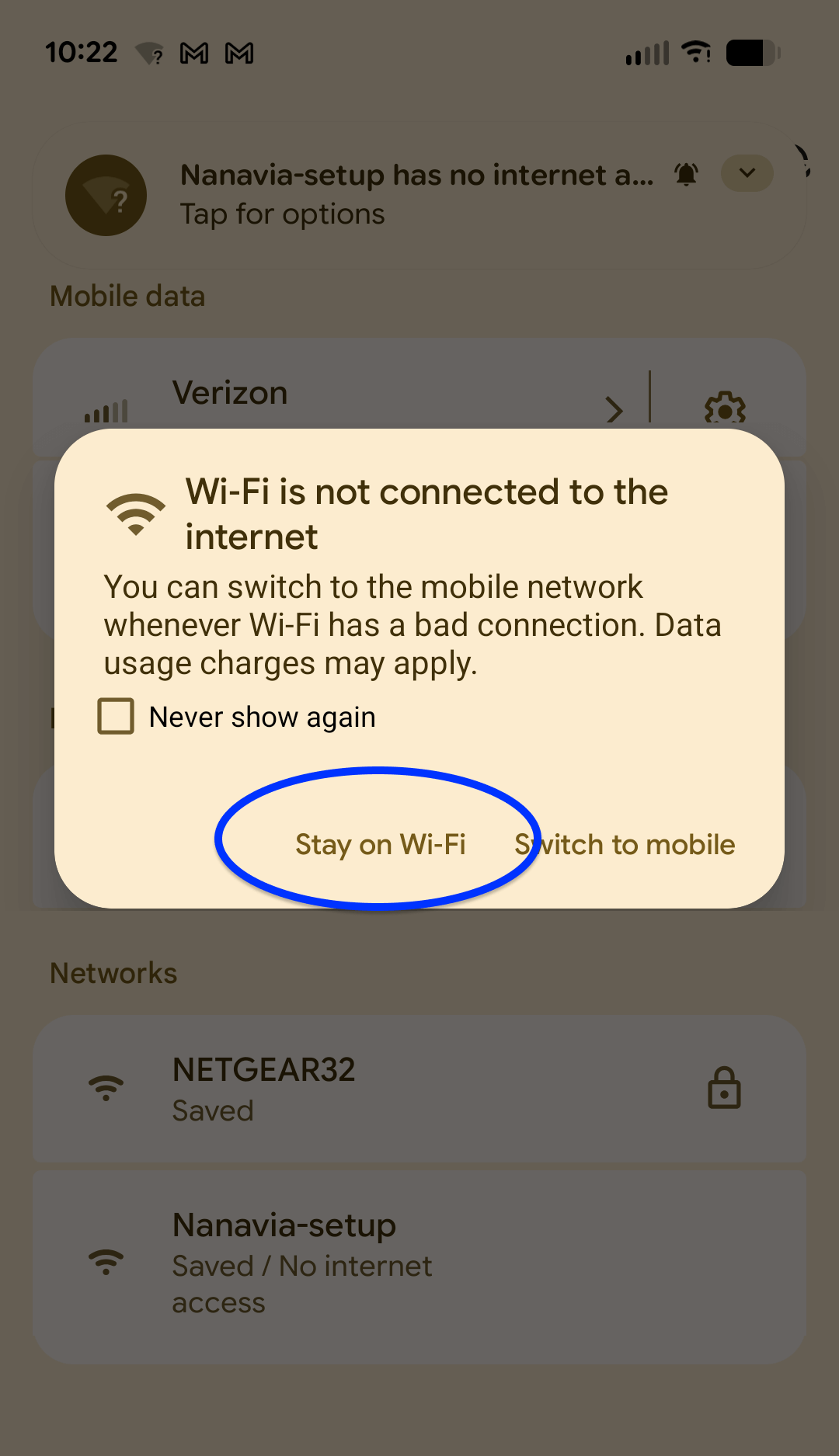 click "Yes" or “Stay on Wi-Fi”.